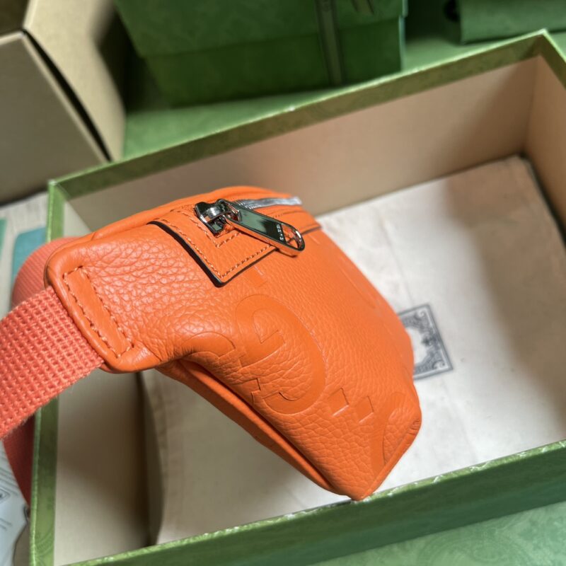Gucci Unisex Jumbo GG Small Belt Bag Orange Leather Zip Closure