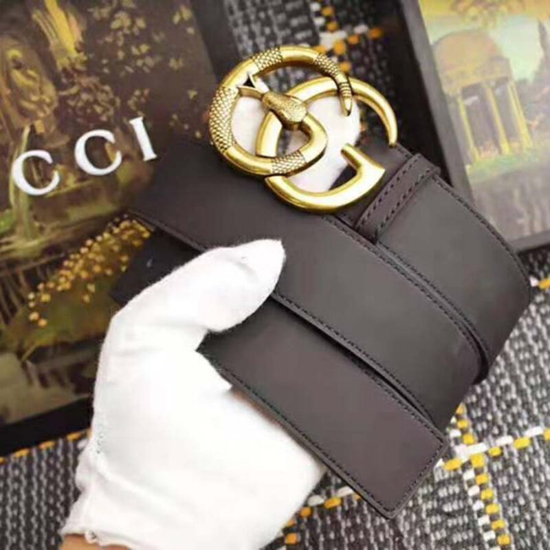 Gucci Unisex Leather Belt with Double G Buckle with Snake in Black Leather