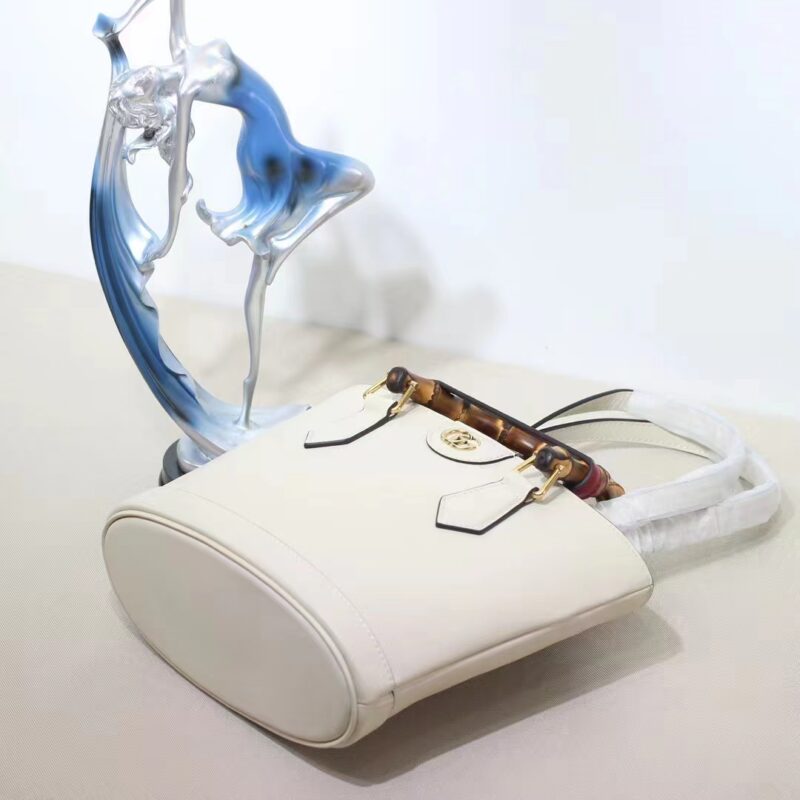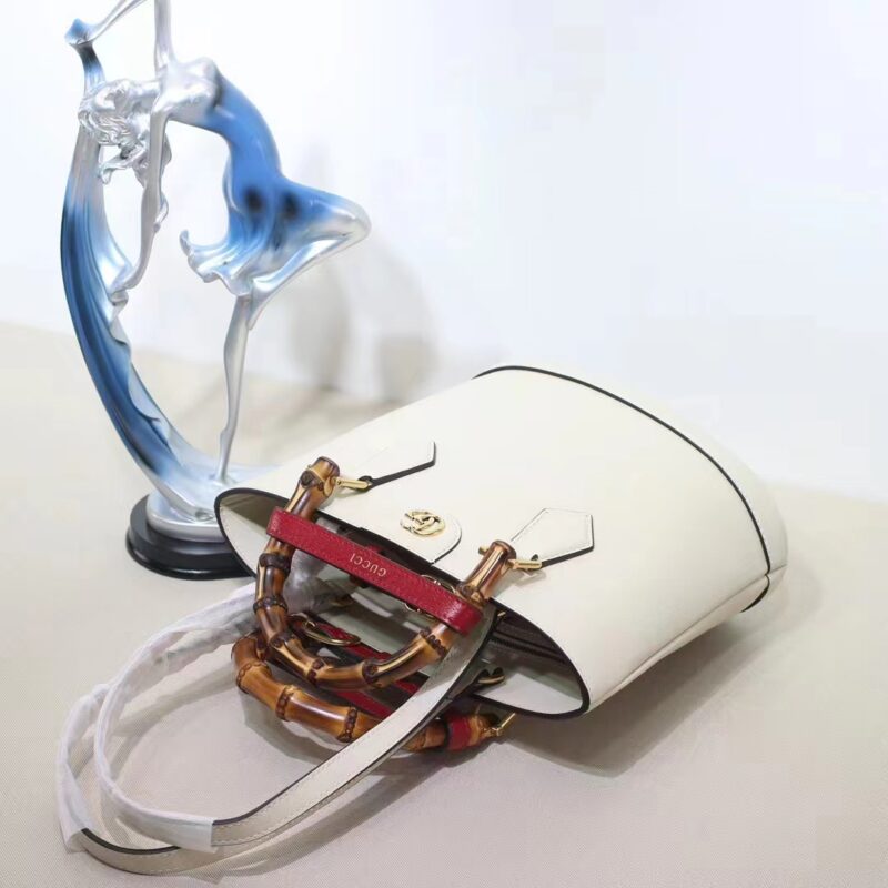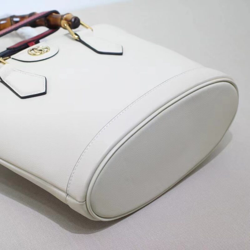 Gucci Women Diana Small Tote Bag White Leather Gold-Toned Hardware Double G