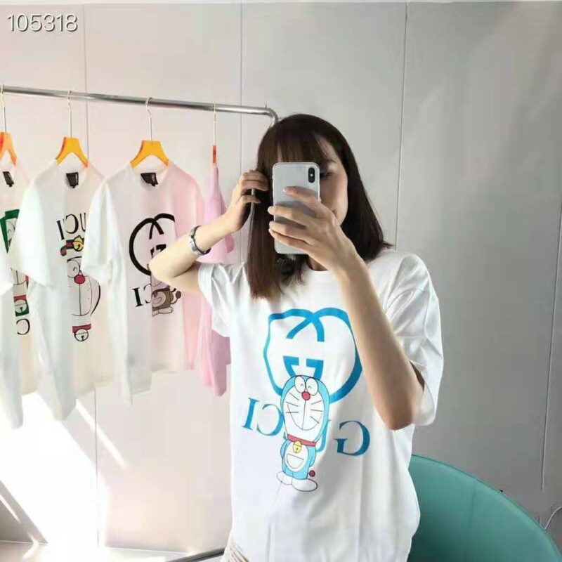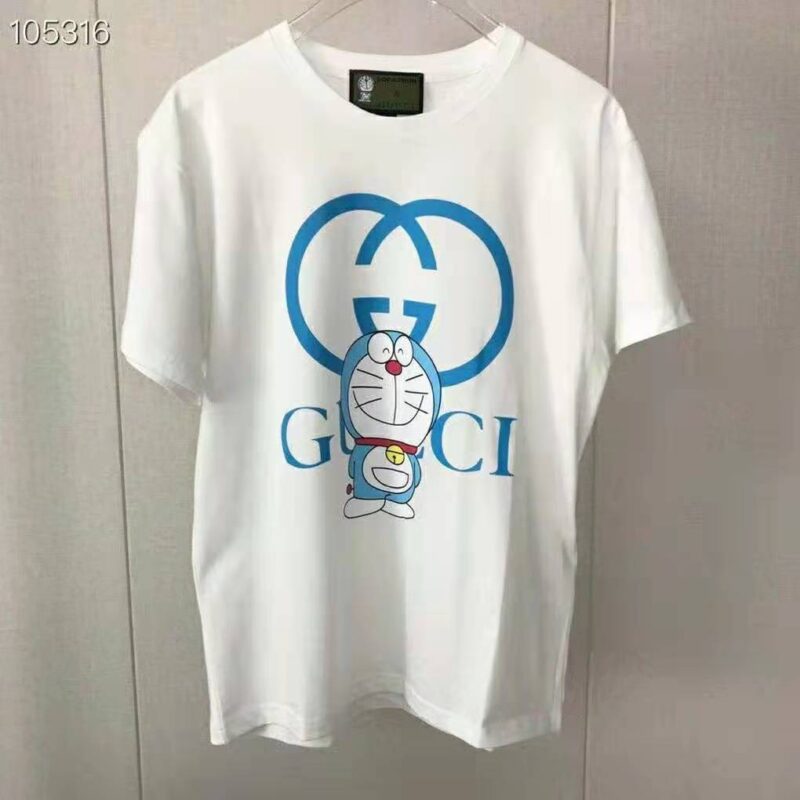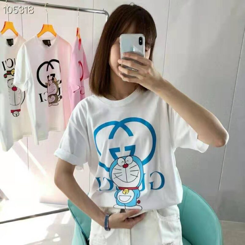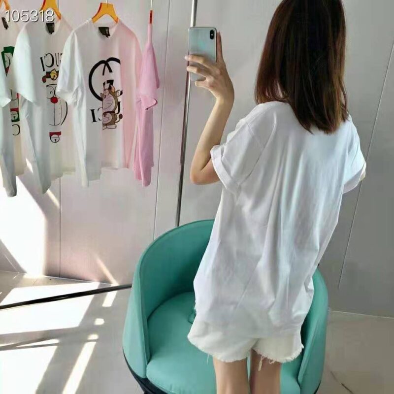 Gucci Women Doraemon x Gucci Oversize T-Shirt Ivory Cotton Jersey Crewneck-Blue