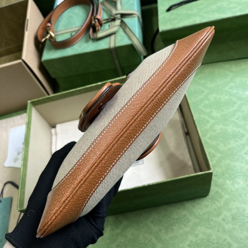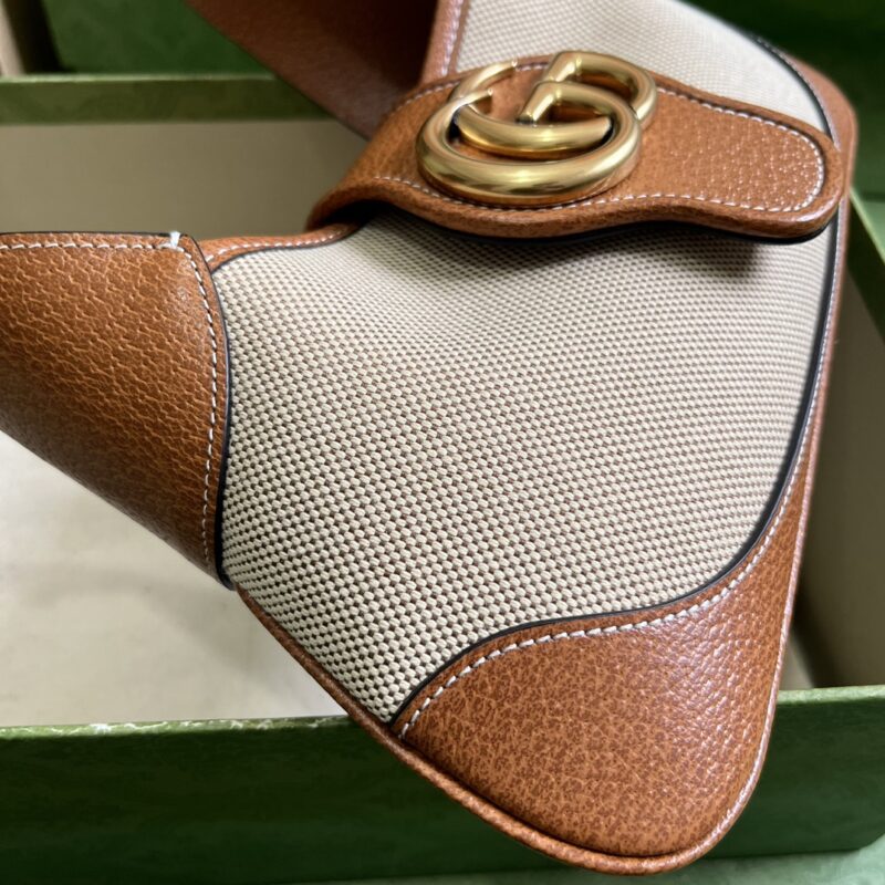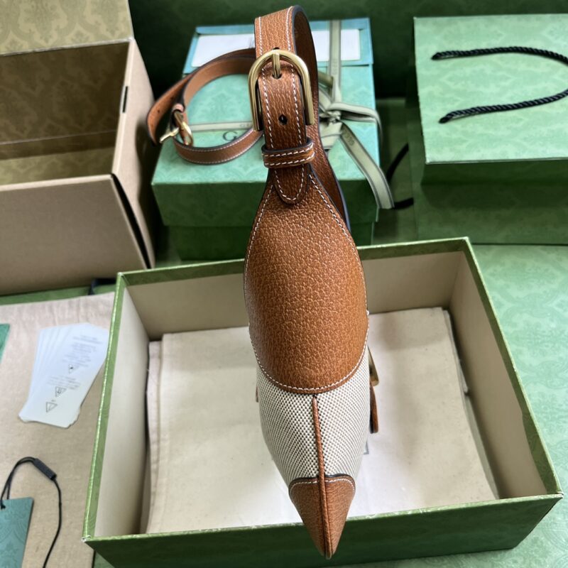 Gucci Women GG Aphrodite Small Shoulder Bag Beige Cotton Canvas Brown Leather