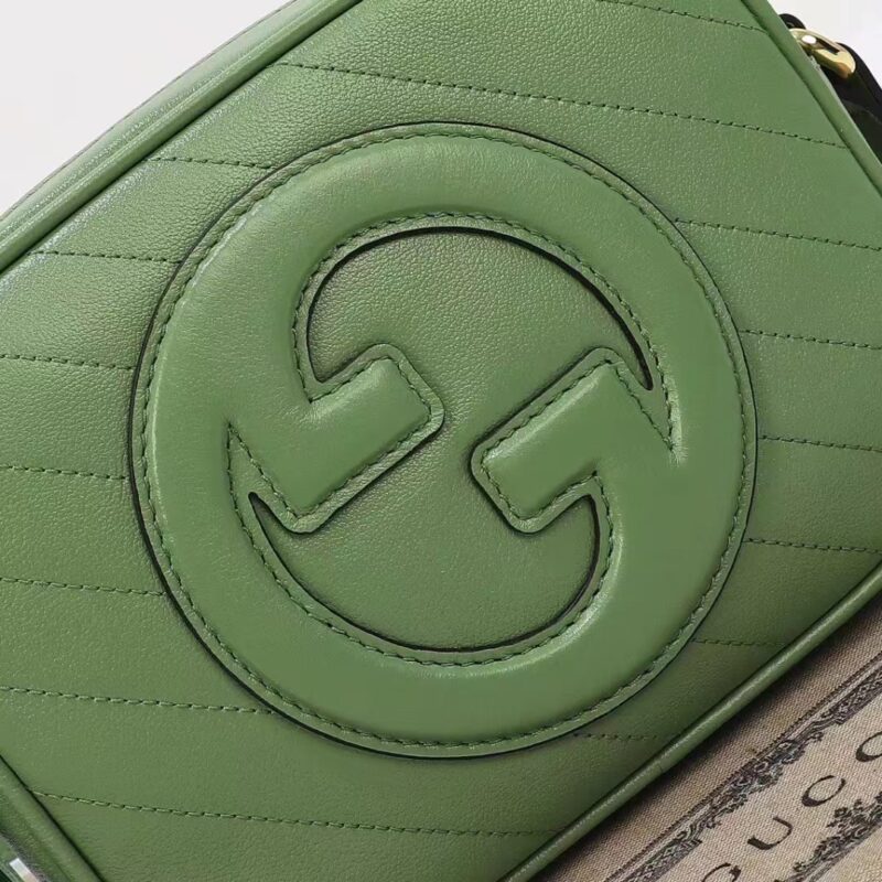 Gucci Women GG Blondie Small Shoulder Bag Green Leather Zipper Closure