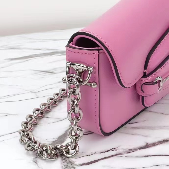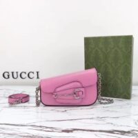 Gucci Women GG Gucci Horsebit 1955 Mini Shoulder Bag Pink Leather Flap Closure