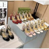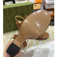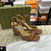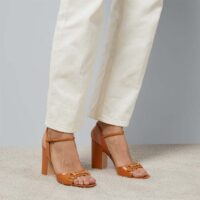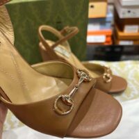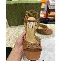 Gucci Women GG Horsebit Sandal Brown Leather High Heel Ankle Buckle