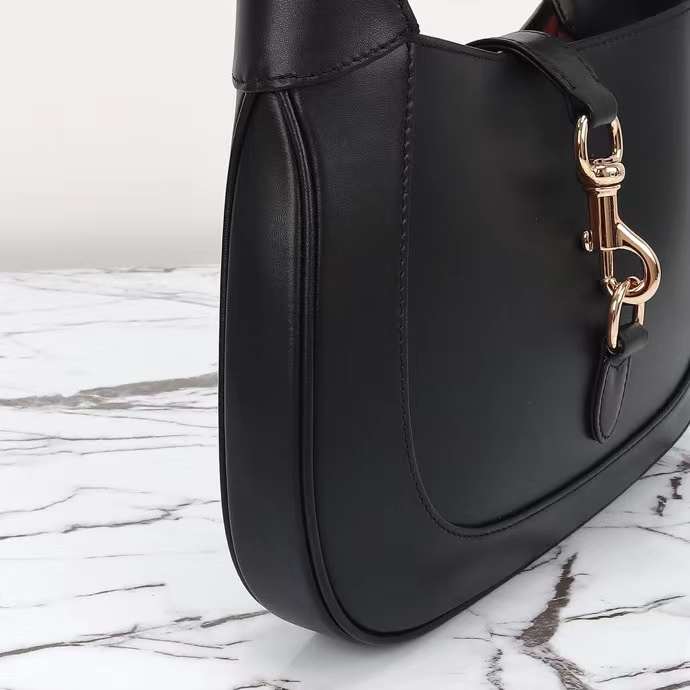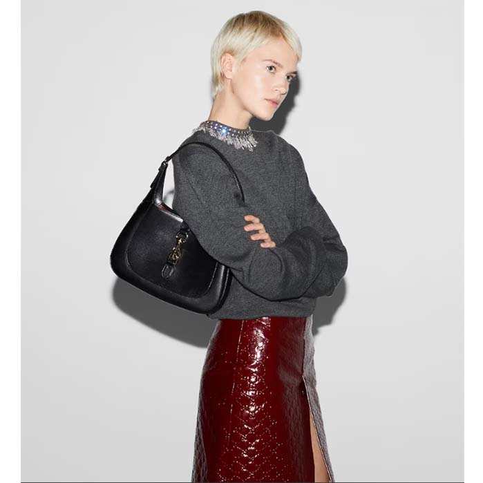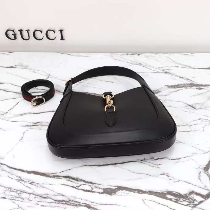 Gucci Women GG Jackie Small Shoulder Bag Black Leather Hook Closure