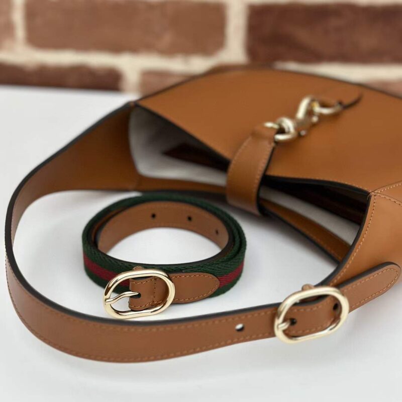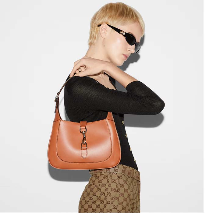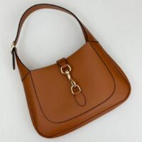 Gucci Women GG Jackie Small Shoulder Bag Brown Leather Hook Closure