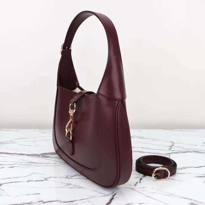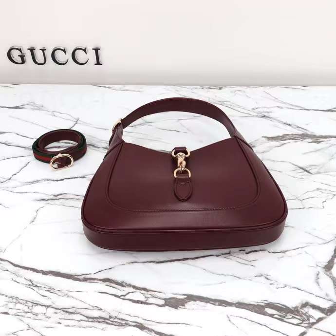 Gucci Women GG Jackie Small Shoulder Bag Rosso Ancora Leather Hook Closure
