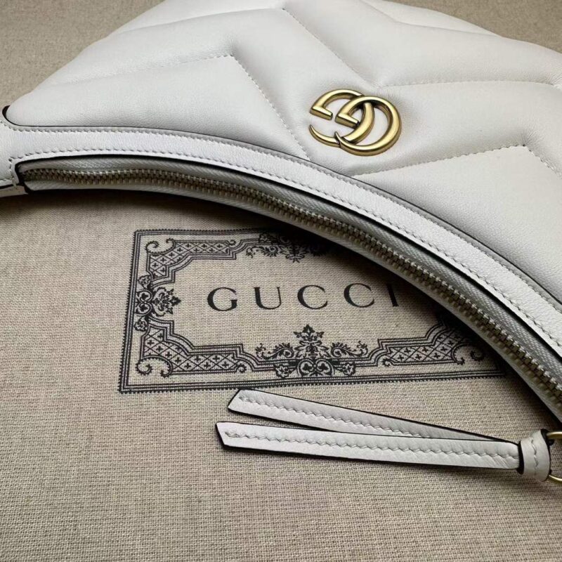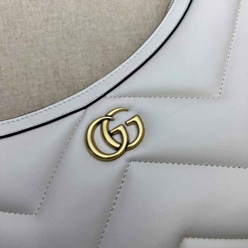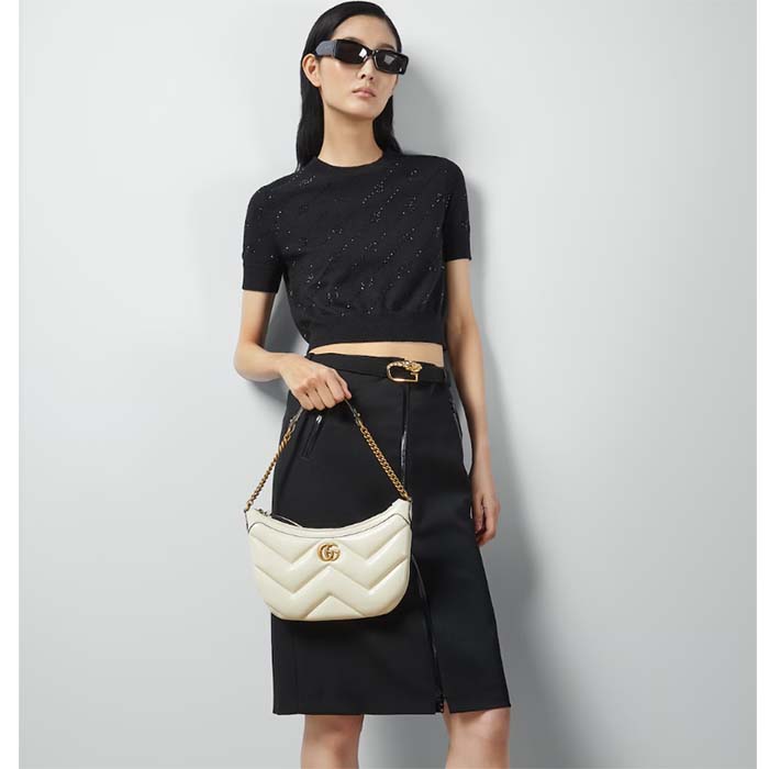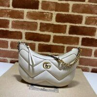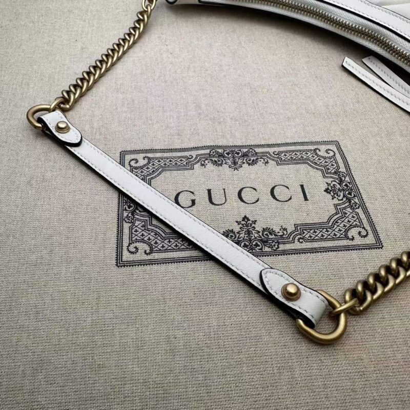 Gucci Women GG Marmont Small Shoulder White Matelassé Chevron Leather Double G