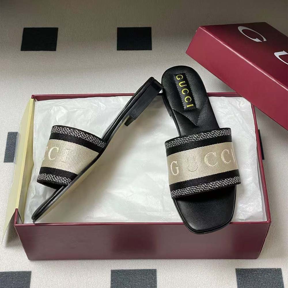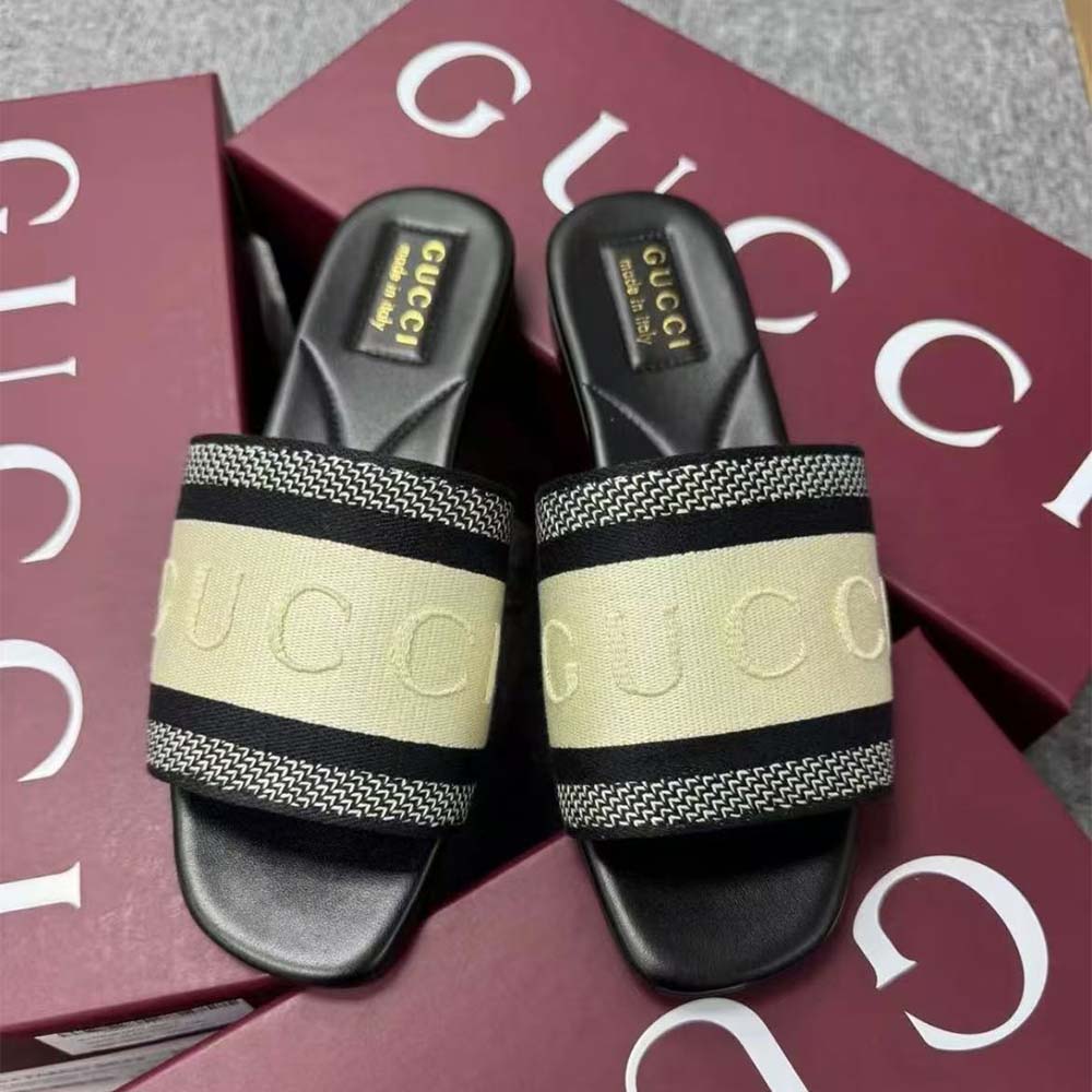 Gucci Women Slide Sandal with Web-White 817564FAECG8843
