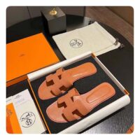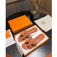 Hermes Unisex Oran Sandal Brown Epsom Calfskin Natural Leather Sole