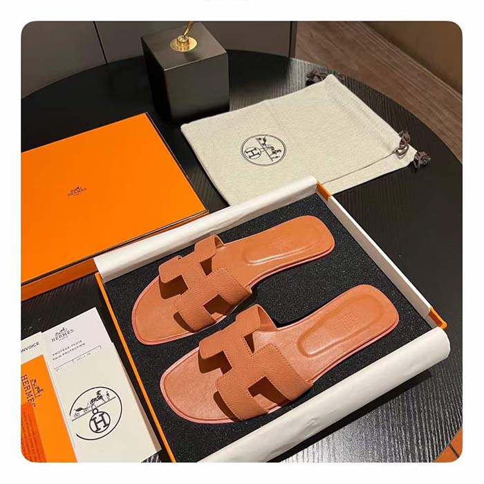 Luxury Dupe Hermes Unisex Oran Sandal Brown Epsom Calfskin Natural Leather Sole