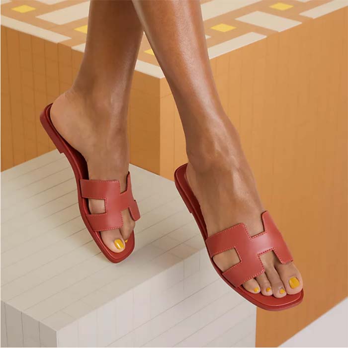 Affordable Dupe Hermes Unisex Oran Sandal Red Epsom Calfskin Natural Leather Sole $149