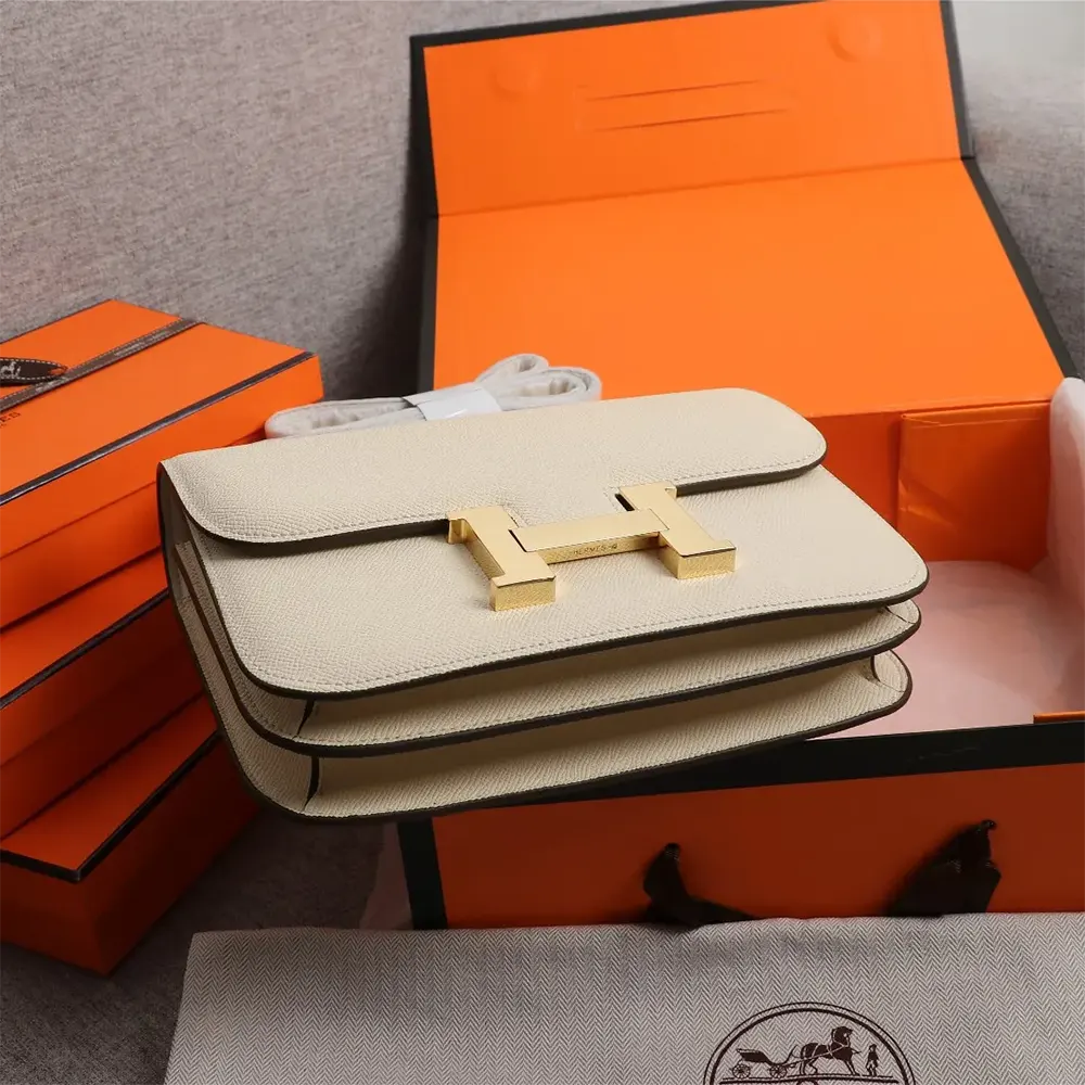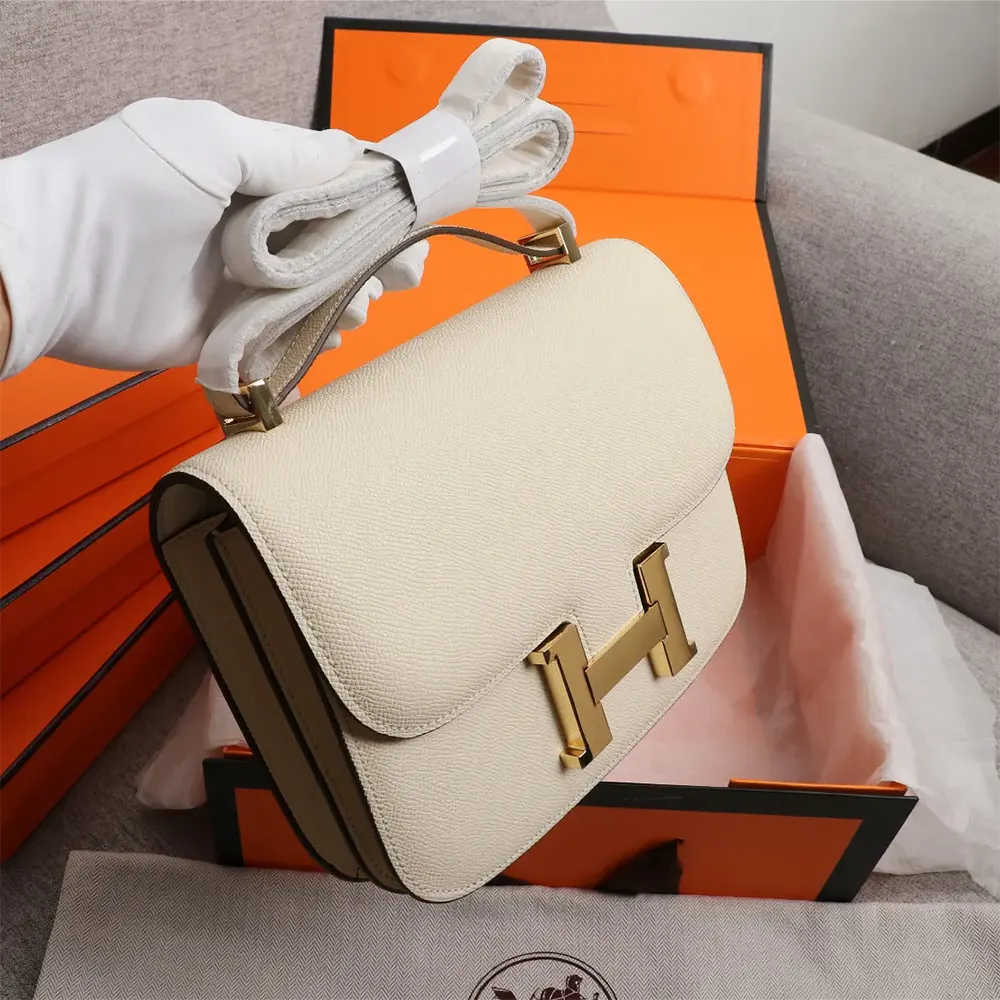 Hermes Women Constance 19 Bag Epsom Leather-White/Gold