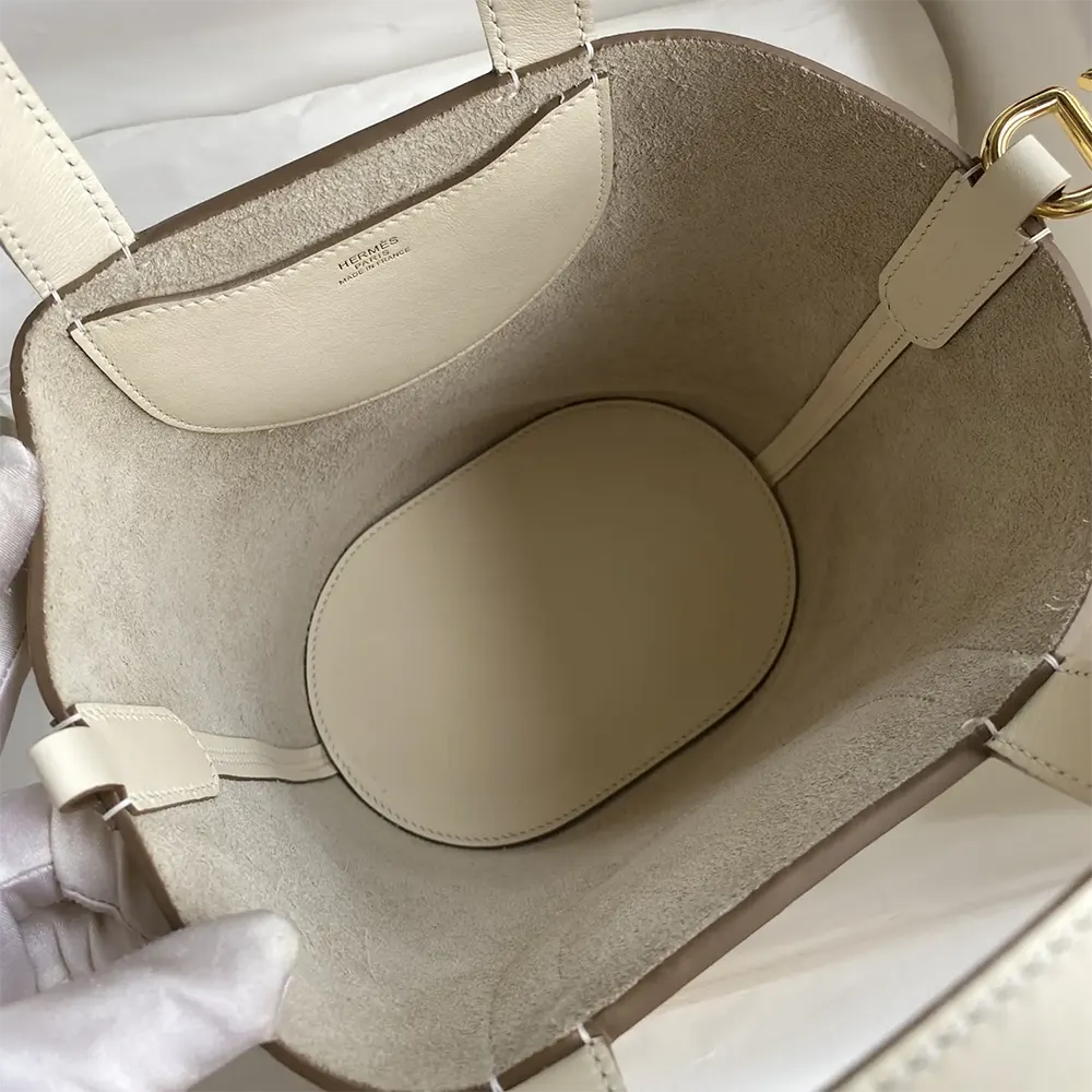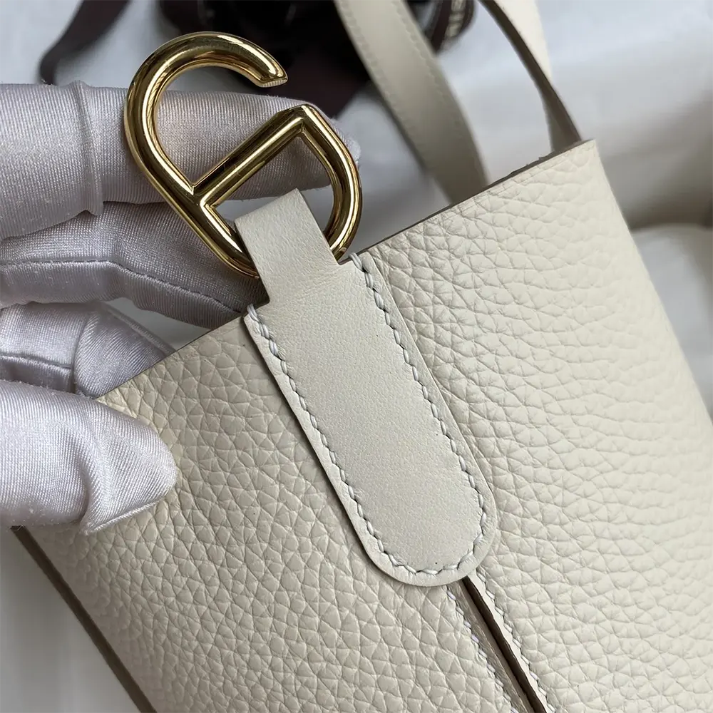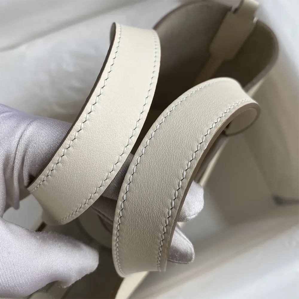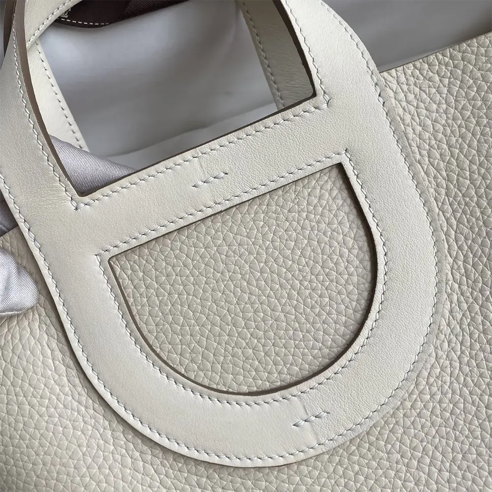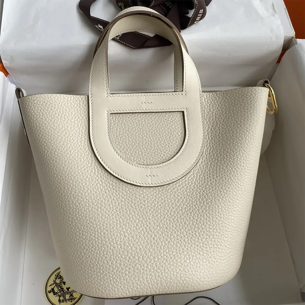 Hermes Women In the Loop 18 Handbag Clemence Leather-White/Gold