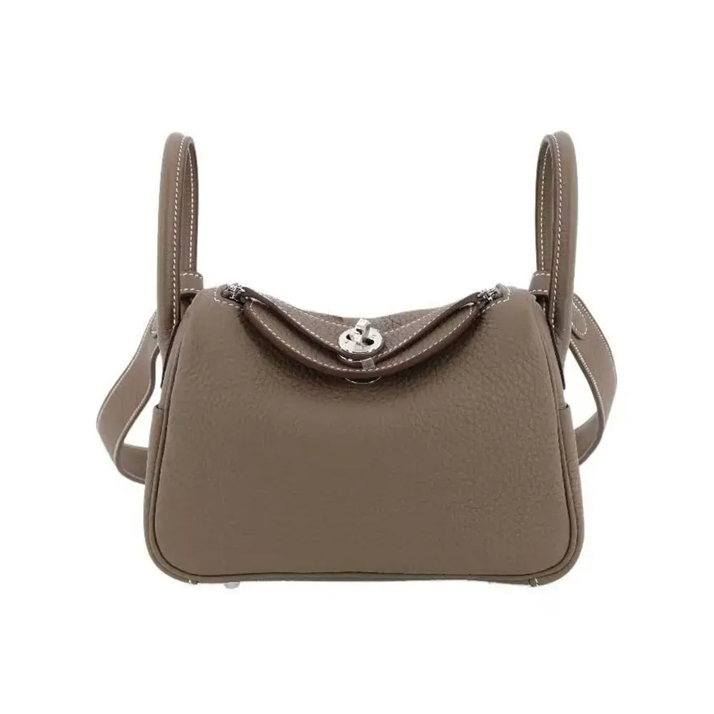 Hermes Women Lindy Mini 19 in Clemence Leather-Etoupe