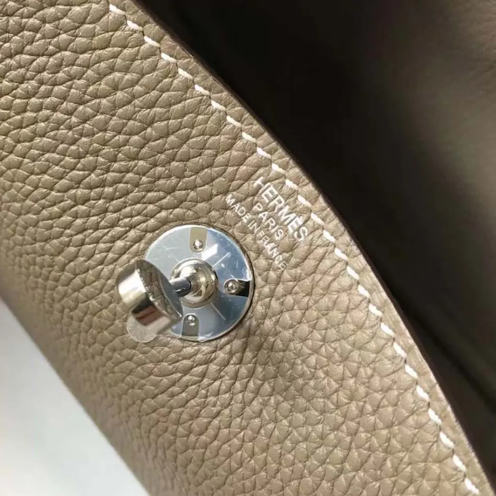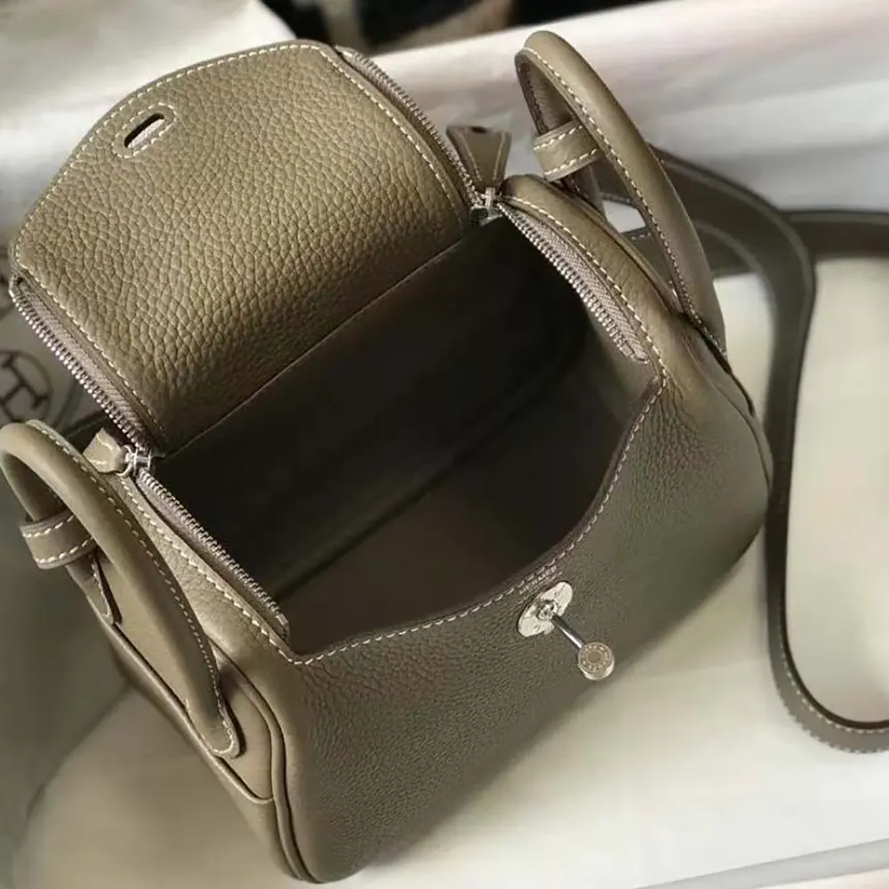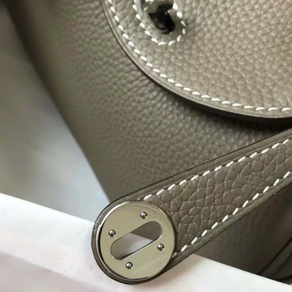 Hermes Fake Women Lindy Mini 19 in Clemence Leather-Etoupe/Silver