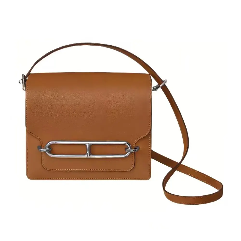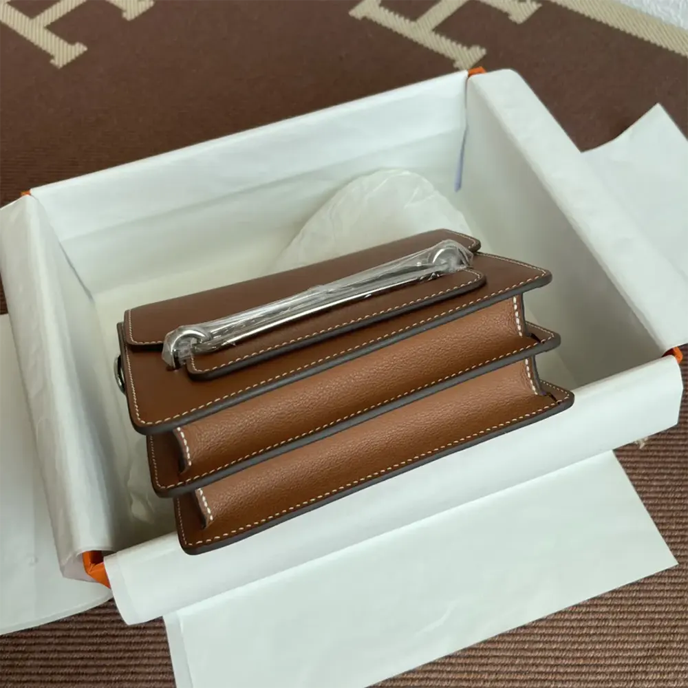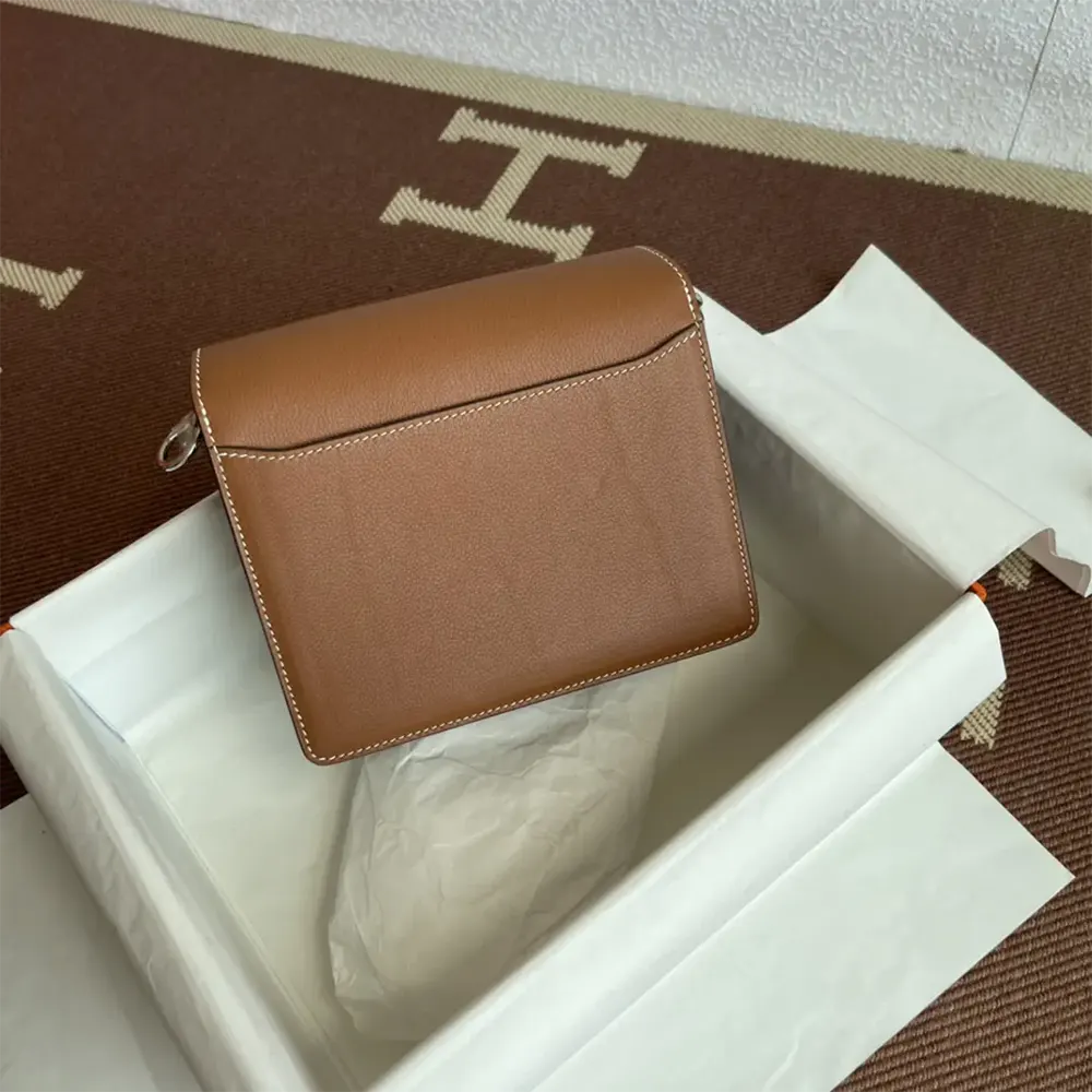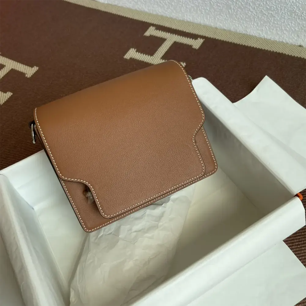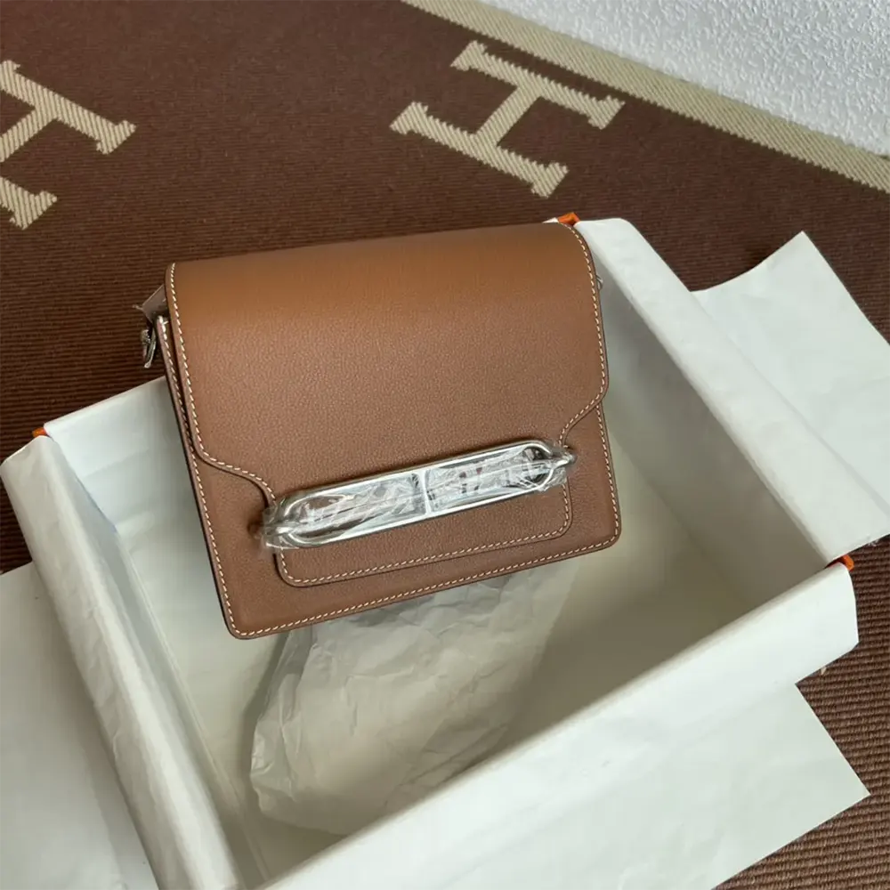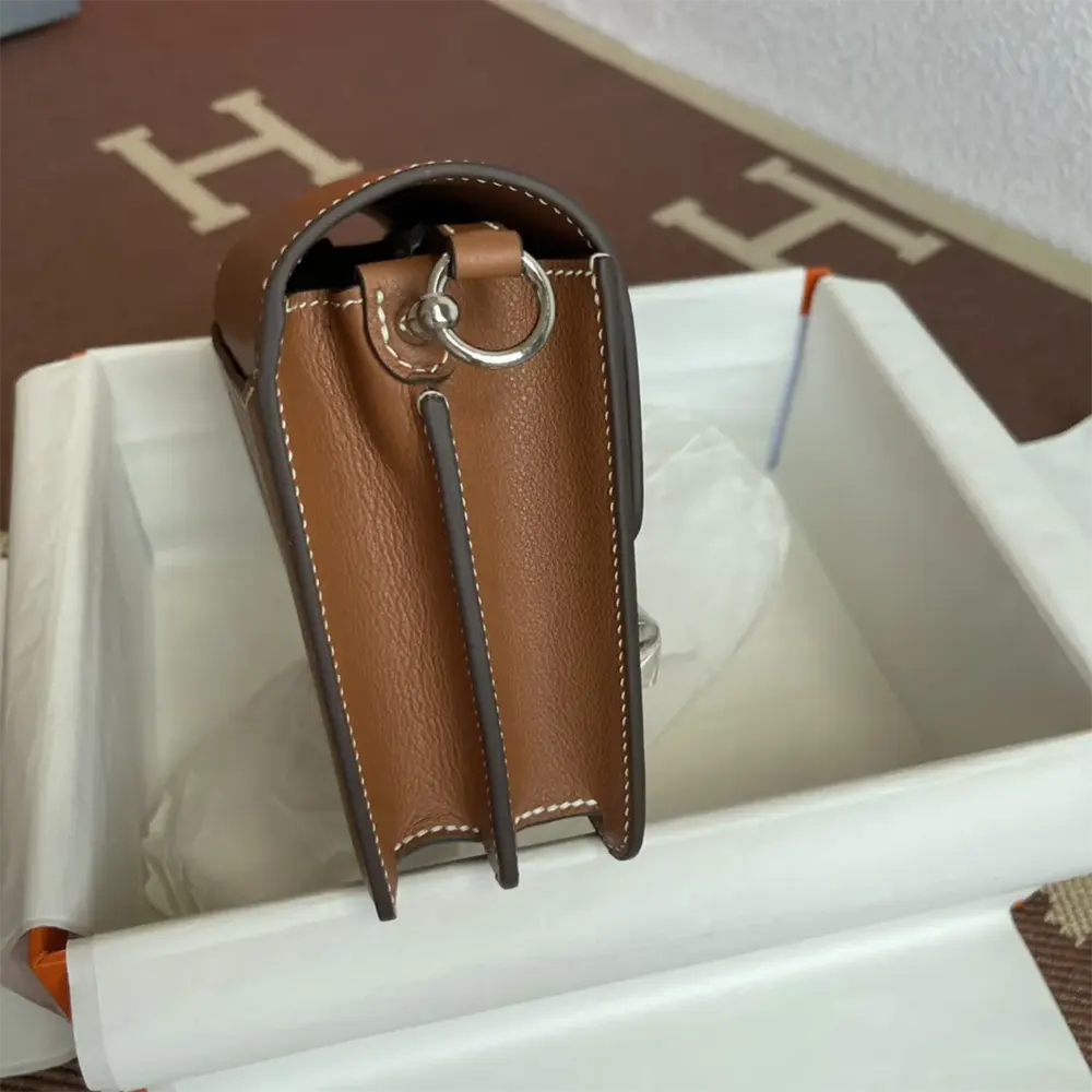 Hermes Women Roulis Mini Bag in Evergrain Calfskin-Brown/Silver