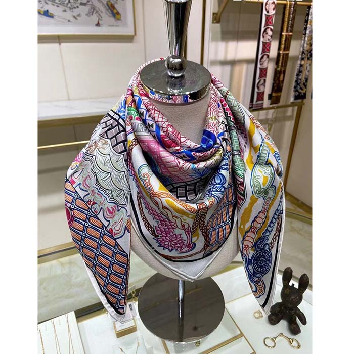 Hermes Women Super Silk Quest Detail Scarf 45 Blue Twill