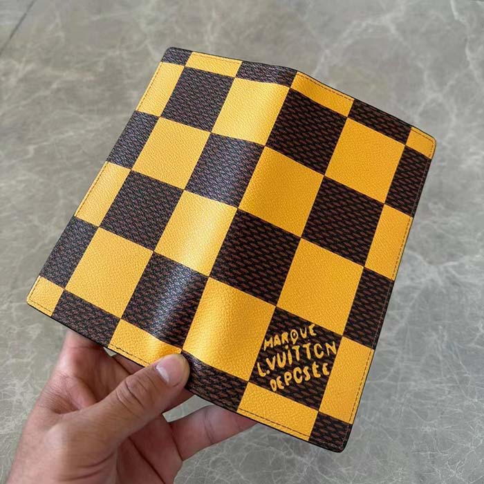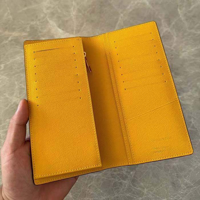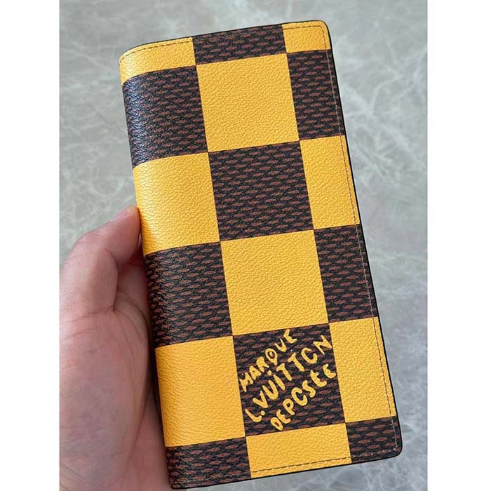 Louis Vuitton LV Unisex Brazza Wallet Yellow Damier Pop Coated Canvas Natural Cowhide-Leather