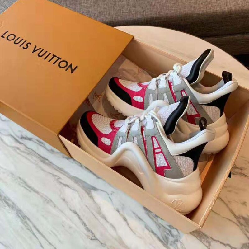 Authentic Dupe Louis Vuitton LV Unisex LV Archlight Sneaker in Calf Leather and Technical Fabric-Pink $179
