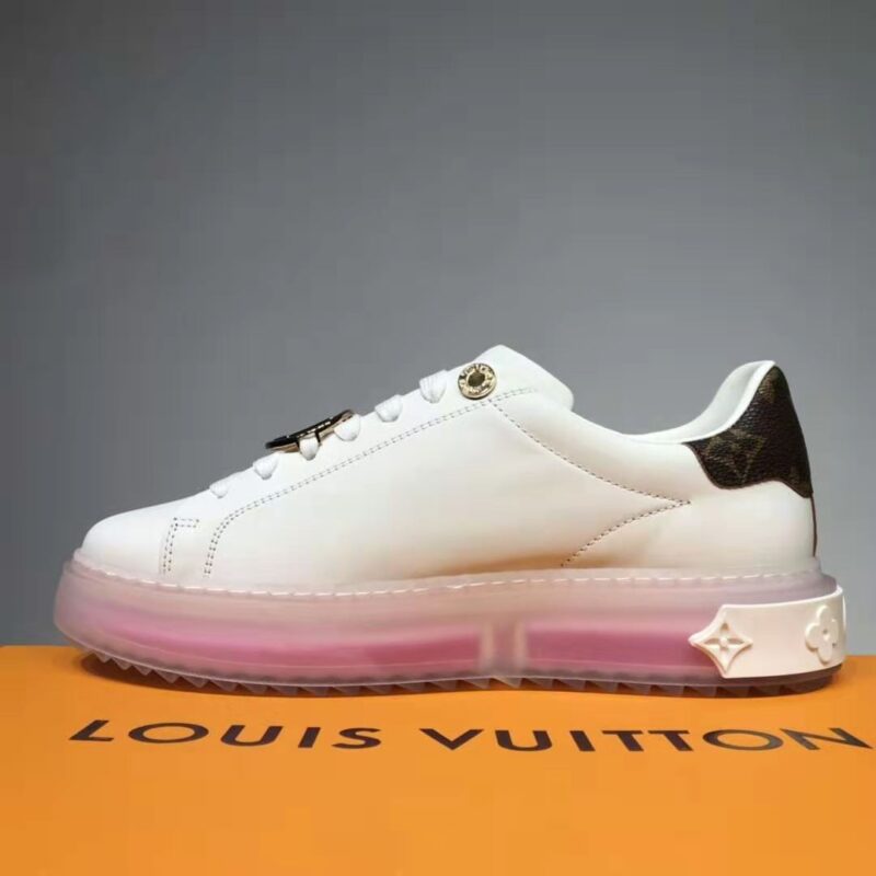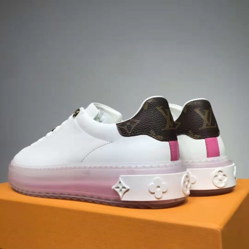 Louis Vuitton LV Unisex Time Out Sneaker 1:1 Quality Dupe Calf Leather Patent Monogram Canvas-Pink