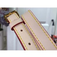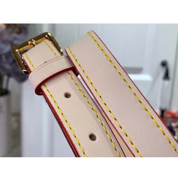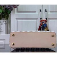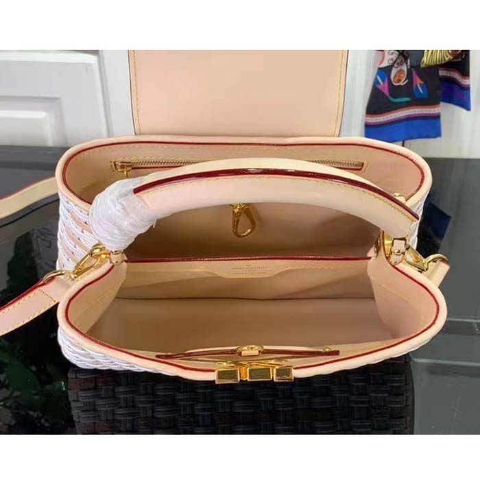 - Superbly crafted, this model is meticulously woven from white canvas strips and beige LV-embossed leather.
