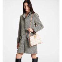 - The top handle, flap and adjustable strap are made with the Maison’s signature natural-cowhide leather.