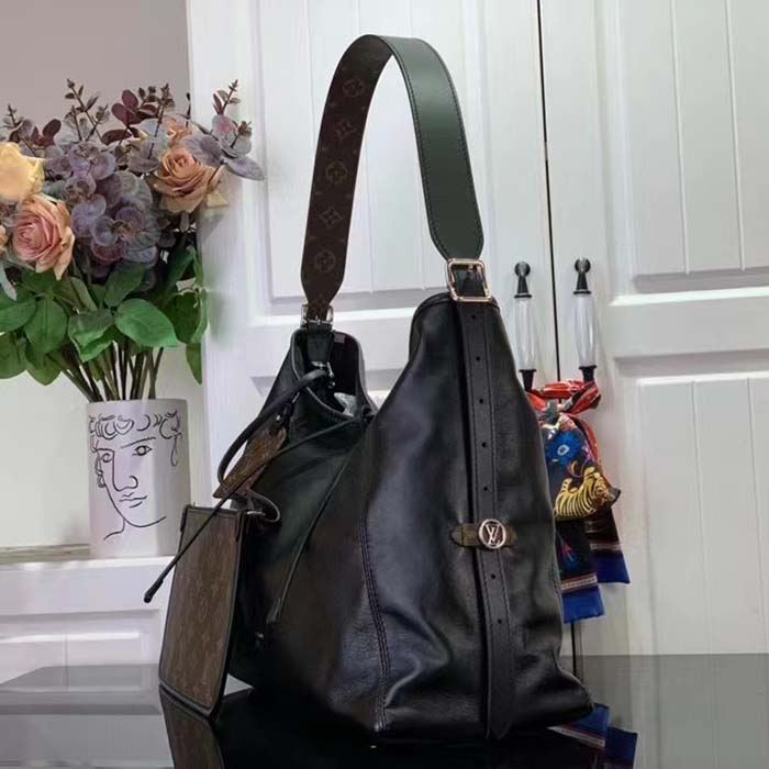 Louis Vuitton LV Women CarryAll Dark MM Black Lambskin Cowhide Leather M25143