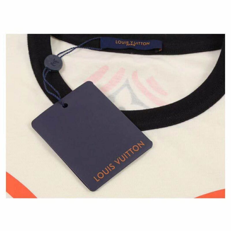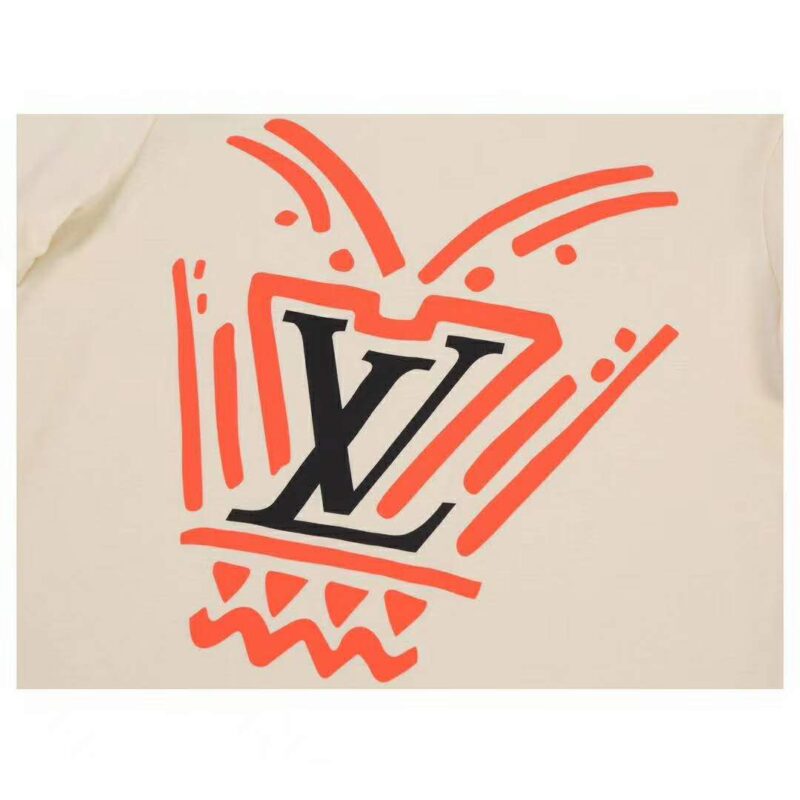 - An exclusive from the LV Crafty capsule, this Louis Vuitton t-shirt in soft cotton jersey features the House’s iconic LV boldly offset by graffiti-inspired red motifs and contrasting black trim at the neck.