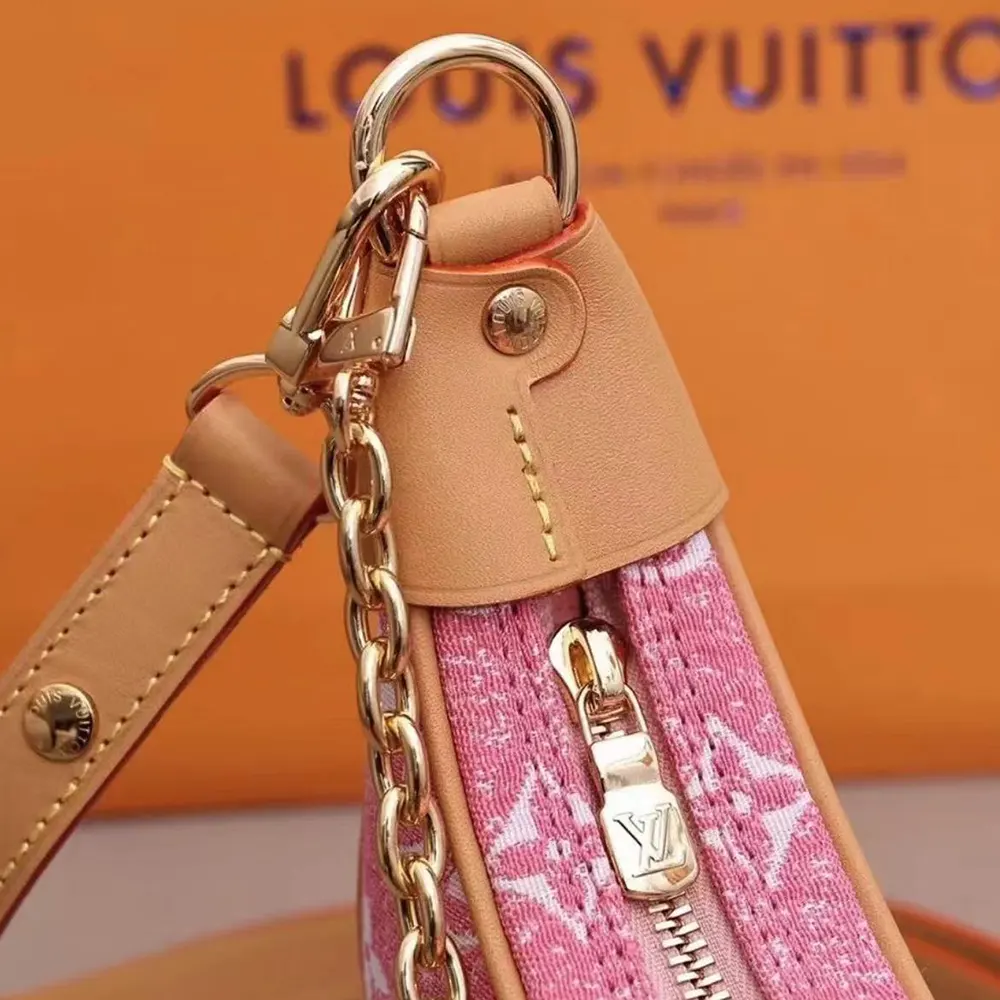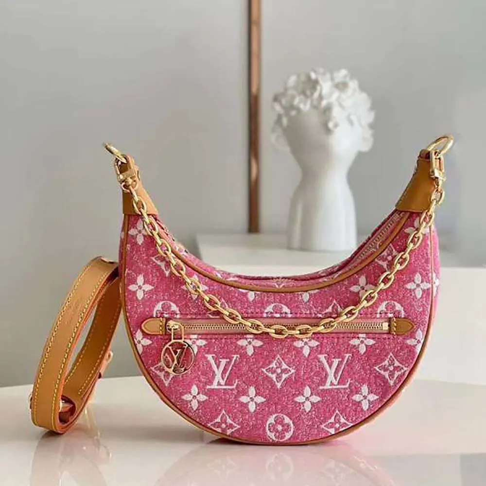 1:1 Quality Dupe Louis Vuitton LV Women Loop PM Bag Pink Denim Textile Jacquard