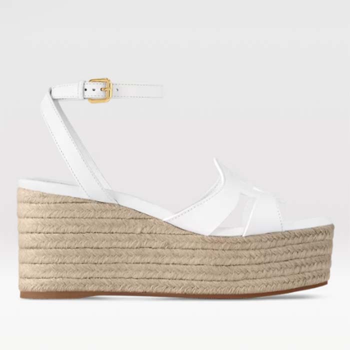 - The LV Isola wedge sandal in smooth calf leather is a relaxed yet refined style characterized by the LV Circle signature on its upper.