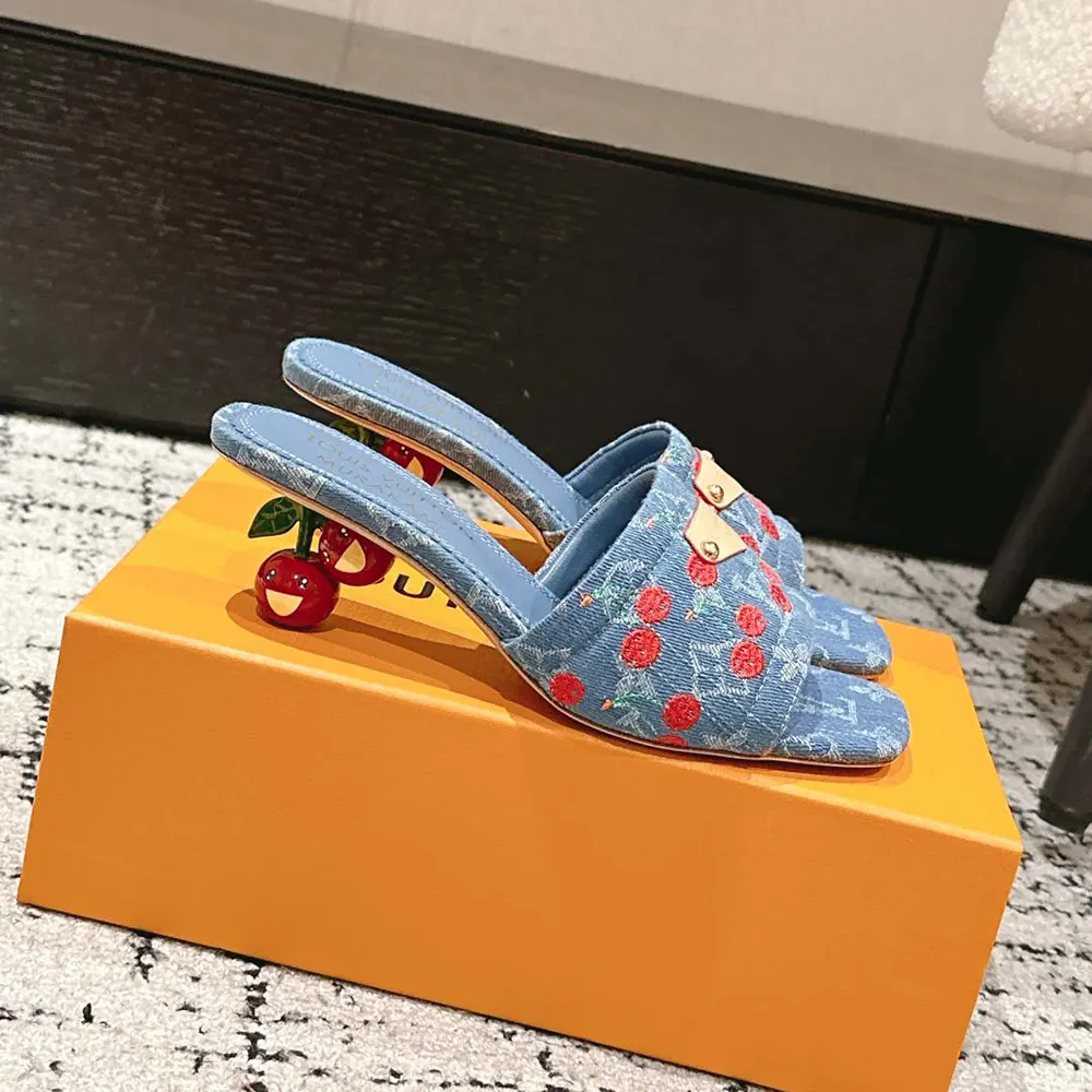 - and a striking cherry-shaped heel elevates the slip-on silhouette with a sculptural twist.