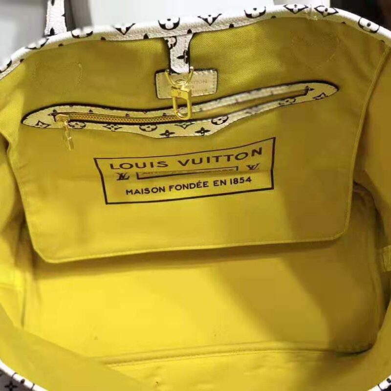 • Playful, colorful, Neverfull: this season the iconic carryall wears a bold new spin on Monogram canvas.