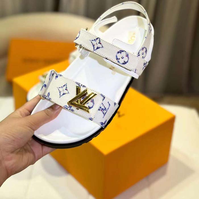 Louis Vuitton LV Women Sunset Flat Comfort Sandal White Tweed 1ACSH5