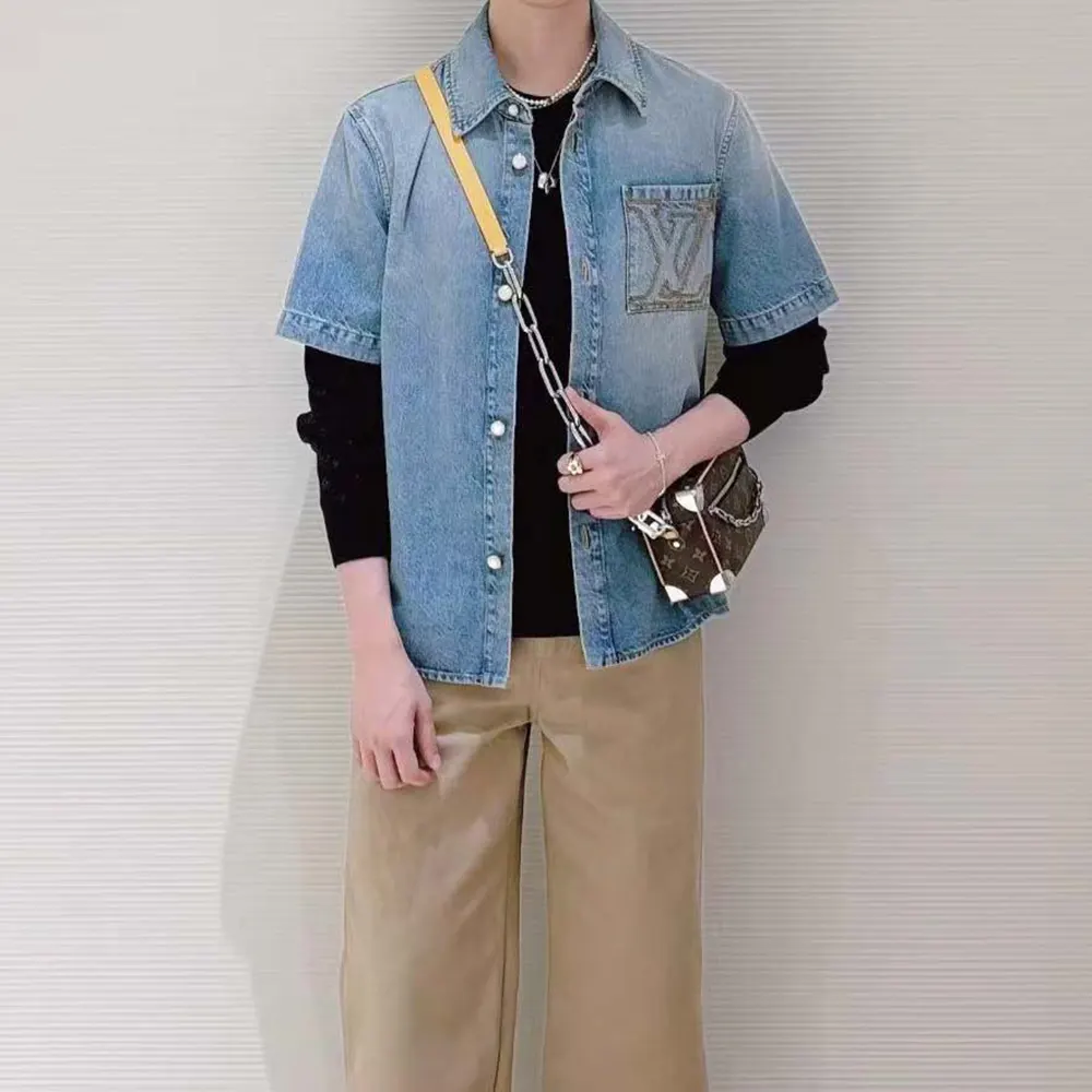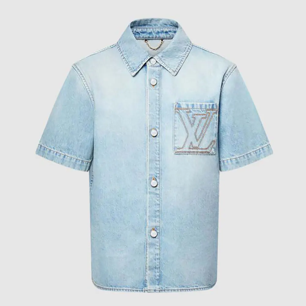 - This short-sleeved denim shirt is a wardrobe essential enhanced with the Louis Vuitton savoir-faire.