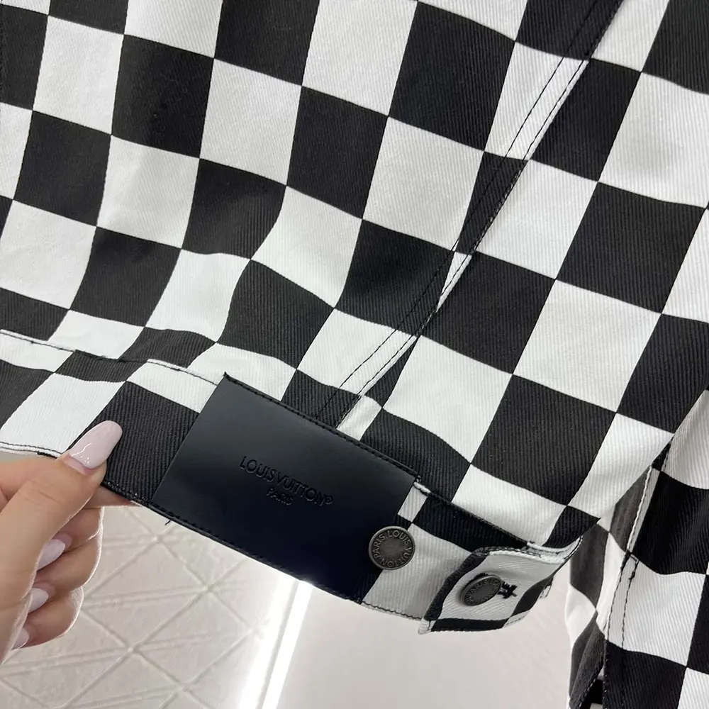 - a graphic statement in an oversized black-and-white print of the Damier motif,