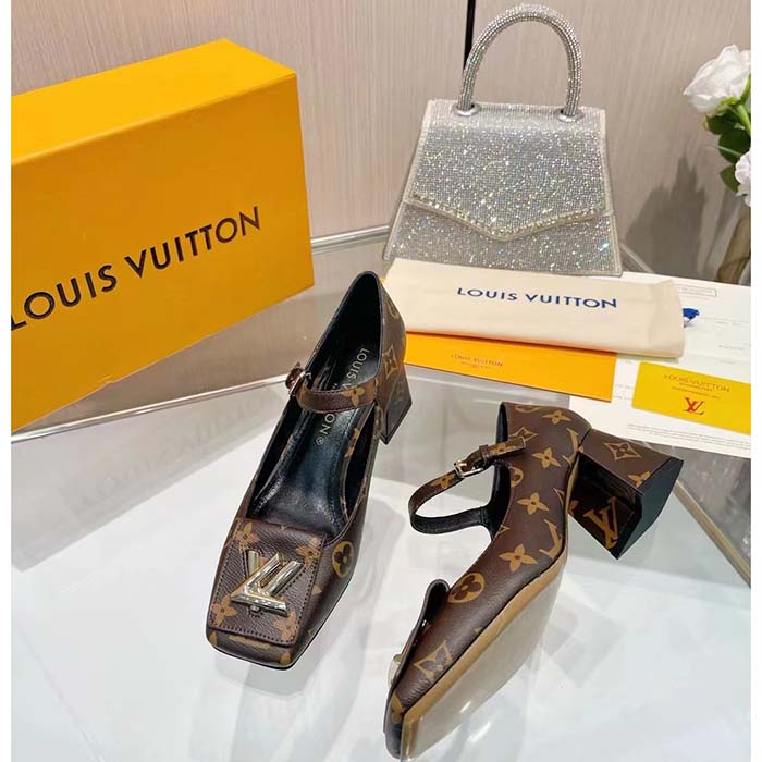Louis Vuitton Women LV Shake Pump Brown Monogram Flower Canvas 5.5 CM Heel