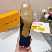 • This model is distinguished by its V-shaped block heel, which is decorated with a crisscross Malletage pattern evoking the lining of Louis Vuitton trunks.