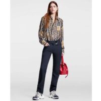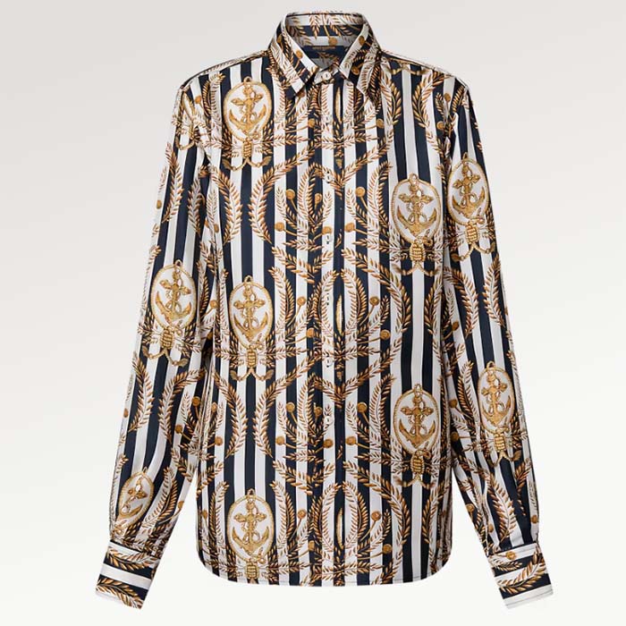 Louis Vuitton Women LV Striped Anchor Silk Shirt Marine 1AFL05