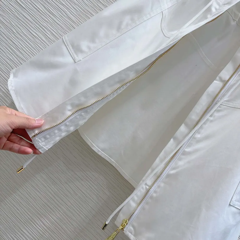 - the drawstring and high neckline can be cinched for a defined silhouette,
