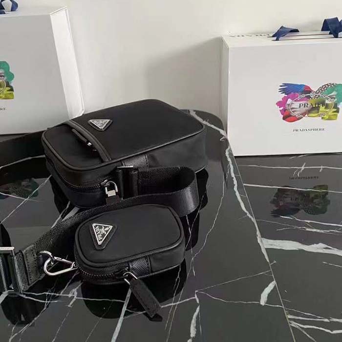 Prada Unisex Re-Nylon Bag Black Zipped Pocket Metal Hardware Zipper Closure